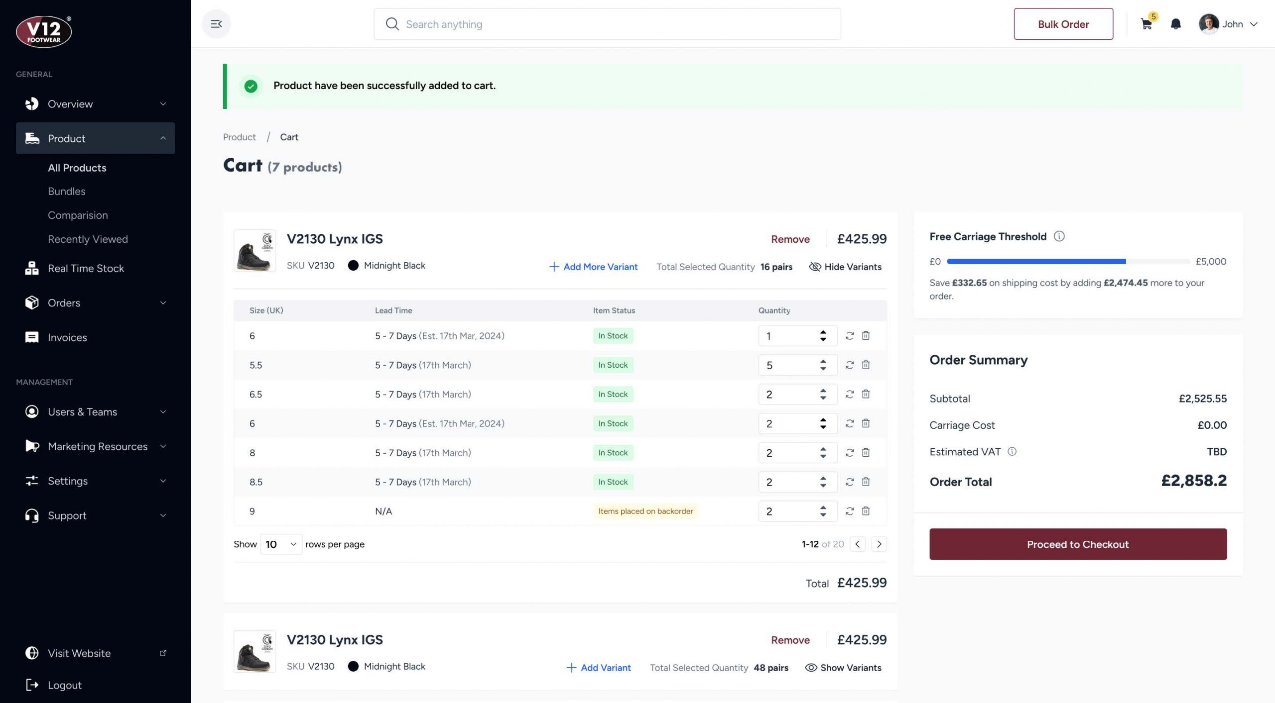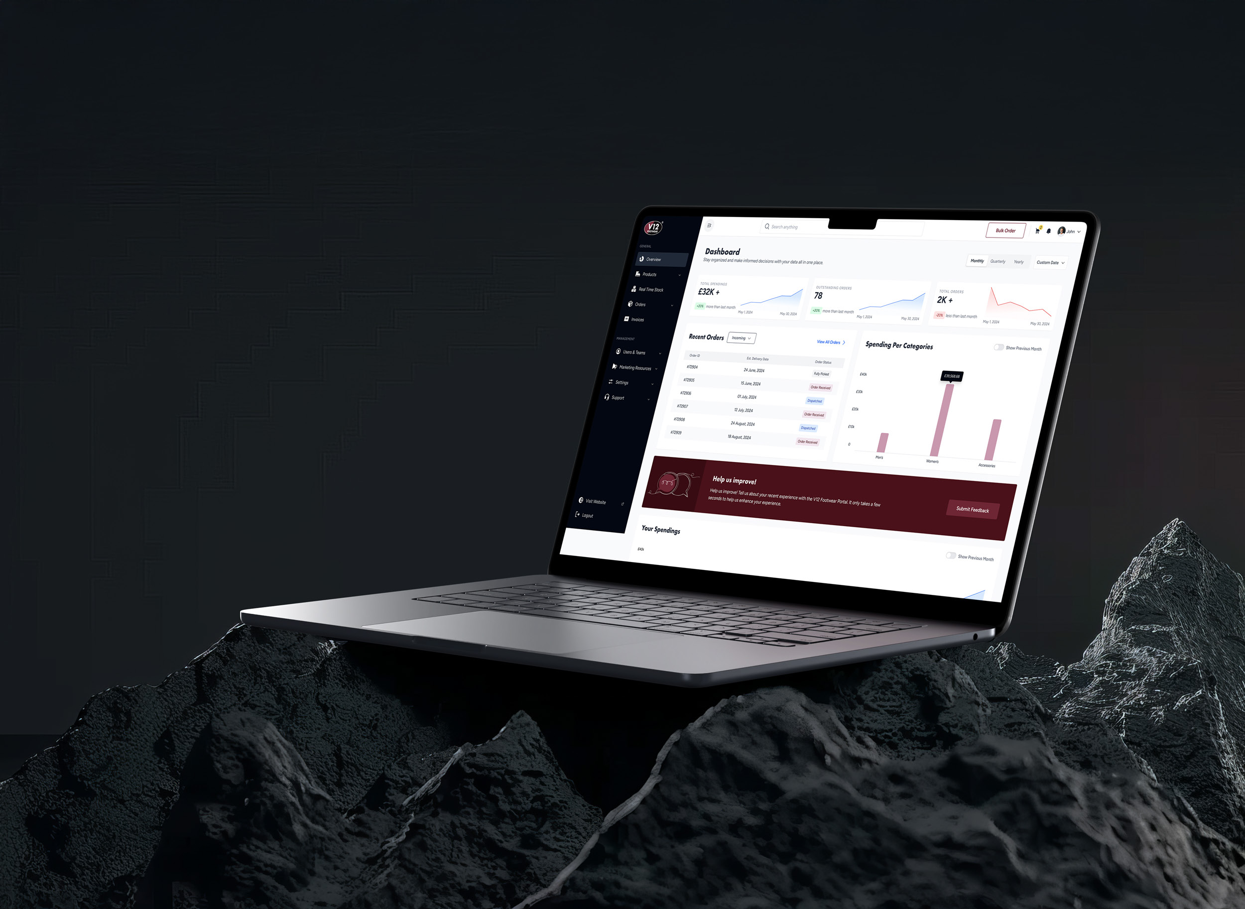 Intuji built a self-service B2B Distributor Portal that gave V12’s distributors full control over ordering, tracking, and stock visibility.